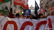 "Sciopero Generale a Roma: Manifestanti in Piazza con Bandiere Palestinesi e Slogan Contro i Governi"