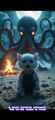 This whimsical AI-generated animation chronicles the misadventures of a chubby white kitten dressed in a diaper and the mythological child hero, Nezha. The video begins with the kitten comically trying to "save" the sleeping Nezha with a large hammer, followed by the kitten carrying Nezha in a hug. The plot thickens when the kitten freezes Nezha in a block of ice inside a refrigerator—first in a modern kitchen and then in a pink one—before displaying the frozen hero as an "ice sculpture" attraction (as indicated by the Chinese text, 哪吒真人冰雕参观). The scene then shifts as the fiery Nezha dramatically melts the ice and gives chase, terrified, the kitten runs away. The video ends with a brief shot of the kitten tied above a campfire (suggesting revenge), and a final, unrelated scene of a chubby orange cat and a smaller cat in distress, concluding the chaotic and funny sequence of events.
