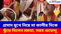 প্রসাদ মুখে নিয়ে মা কালীর দিকে ছুঁড়ে দিলেন মমতা, সরব শুভেন্দু