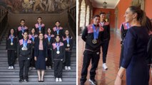 Claudia Sheinbaum recibe en Palacio Nacional a medallistas del Mundial de Singapur