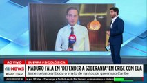 A Venezuela denunciou que cinco caças americanos se aproximaram da costa do país. A ação faz parte da operação contra o tráfico dos EUA e fortalece a tensão entre os países. O repórter Eliseu Caetano detalha o assunto.