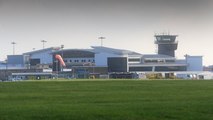 Plane landing in strong wind at Leeds Bradford Airport