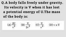 A body falls freely under gravity.Its velocity is v when it has lost a potential energy of U.The mass of the body is