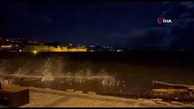Denizde oluşan dev dalgalar kıyıyı adeta dövdü