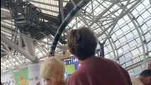 00:00While traveling on a cable car above a soccer stadium, a group of fans hoped to witness