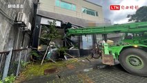 吊車一頭撞進南港民宅 現場驚悚畫面曝(翻攝畫面)