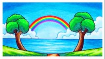 Drawing & Coloring Beautiful Rainbow Scenery