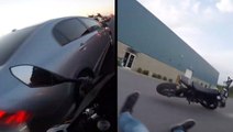 A motorcyclist made a hasty overtake, only to encounter a sharp curve ahead. He narrowly avoided crashing into the curb, making a swift correction at the last moment. Although he lost control briefly, the rider managed to recover and continued on his way, seemingly unharmed.
