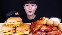 치즈버거 치즈볼 붐바스틱 치킨 먹방ASMR MUKBANG TRIPLE CHEESEBURGERS & SPICY BBQ CHICKEN チキン チーズバーガー eating sounds