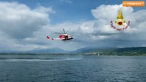 Tuffo dall'elicottero per salvare una persona. Esercitazione dei vigili del fuoco