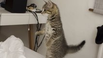 Meet Suki โ the brave little kitten who clearly missed the memo on how cats are supposed to behave! ๐ In this adorable and hilarious video, Suki stands tall on her two back legs, balancing effortlessly at the edge of the bed as if sheโs part cat, part human. Her owner, Harvey, canโt help but laugh, joking that this might be a โskinwalker catโ moment!
