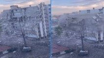 Hatay'da 9 katlı ağır hasarlı bina böyle yıkıldı