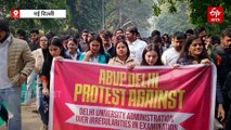 दिल्ली यूनिवर्सिटी में ABVP ने किया विरोध प्रदर्शन, DU एग्जाम में अनियमितताओं के खिलाफ उठाई आवाज