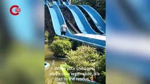 Kızı sıkışan baba, su kaydırağına tırmandı