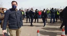 Abucheos a la ministra de Transportes hoy a su llegada a Valladolid por transportistas en huelga