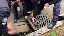 Bursa'da kanalizasyonda mahsur kalan kedi böyle kurtarıldı
