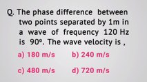 The phase difference between two points separated by 1m in a wave of frequency 120 Hz is 90 degree. The wave velocity is