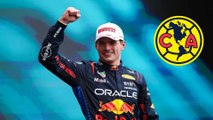 Max Verstappen recibe playera del América a manos de Israel Reyes, Brian Rodríguez y Alan Cervantes en GP de México