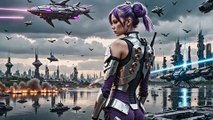 In a golden desert, pyramids gleam with holographic hieroglyphs. Gods dance in a circle: the main goddess in a white-gold, gem-encrusted top, surrounded by three goddesses and pharaohs in futuristic robes. Their dance summons spaceships landing on pyramids. Swirling sand forms a portal. The goddesses transform into a falcon, lioness, and serpent, dancing without limits—becoming everything: sand, stars, light. Pharaohs strike scepters, revealing a glass platform with pulsating circuits. The main goddess, radiating power, leads the dance, her top projecting holographic patterns. The portal expands, a galaxy ignites in the sky. The gods ascend, becoming energy, creating stars and cosmos. The desert quiets, but the sand shimmers with their essence. The main goddess’s statue glows, symbolizing eternal power.