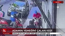 Adana'da sokak kedisi, işçinin öğle yemeğini alıp kaçtı