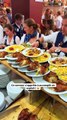 À l’Oktoberfest à Munich, le serveur relève le défi avec brio : une immense planche chargée d’assiettes prête à défier la gravité. 🍺💪