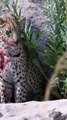 A young leopard, looking quite worse for wear, with a young warthog kill 🔥