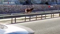 Seyir halindeki sürücü kaydetti: Yolda koşan ayılar kamerada