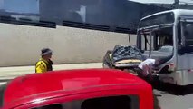 Acidente entre ônibus e carro causa susto na Avenida Brasil