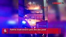Fatih'te 3 katlı binanın çatısı alev alev yandı