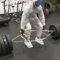 Guy Wearing Hazmat Suit Lifts Heavy Barbell at Gym