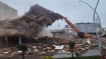 6 katlı binanın iş makinesinin tek darbesiyle yıkıldığı anlar