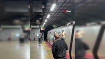Metro istasyonunda şoke eden olay: Bir anda metro aracının üstüne tırmandı!