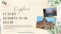 If you want your getaway to feel extra special, luxury resorts near Delhi NCR are the answer. These resorts combine stunning surroundings with high-end amenities to offer a truly royal experience. From well-designed suites to fine dining restaurants and spa retreats, everything here is created to pamper you. Whether youβre celebrating a special occasion, hosting a corporate event, or simply taking a break, luxury resorts near Delhi NCR make every moment memorable. Adventure lovers can enjoy outdoor activities, while those looking to relax can spend their time by the pool or indulge in wellness therapies. With excellent hospitality and beautiful locations, these resorts redefine relaxation and luxury. Call: +91-8130781111, 8826291111 Visit: https://www.resortsneardelhi.in/luxury-resorts-near-delhi