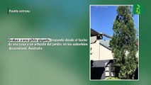 Graban a una pitón gigante trepando desde el techo de una casa a un arbusto del jardín, en los suburbios Queensland, Australia
