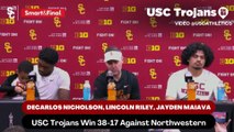 USC Trojans Cornerback DeCarlos Nicholson, Coach Lincoln Riley, and Quarterback Jayden Maiava discusses how the Coliseum has changed in the best way. Riley talked about how Friday nigh games would've looked different a couple years ago and praised the fans.