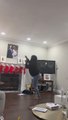 Guy Wearing VR Goggles Unintentionally Breaks Ceiling Fan's Globe While Playing VR Game