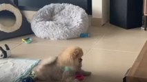 Instead of running into the wide world, the pup darted straight into Amber’s legs and toppled her like a bowling pin. WooGlobe Ref : WGA350682 For licensing and to use this video, please email licensing@wooglobe.com