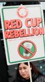 Trabajadores de Starbucks protestan en el Red Cup Day