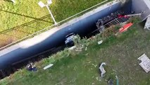9 araca çarpıp 5 metrelik boşluğa düştü