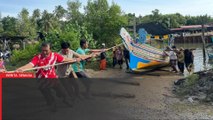 00:00Menjelang kemuncak monsoon timur laut MTL, suasana di pangkalan Sabak, kota baru sekali lagi meriah dengan tradisi tahunan apabila nelayan dan penduduk kampung bergotong-royong menarik perahu kolik ke darat sebagai persiapan menghadapi musim laut bergelora.