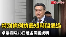 4100億特別條例拚最短時間通過 卓榮泰盼28日赴各黨團說明