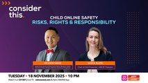 From deepfakes to AI-generated child sexual abuse materials, online threats are rapidly evolving and governments are racing to respond. What protections do children actually need in today’s digital world? And how can young people, policymakers, and tech companies co-create digital spaces that are safe and informed by children’s actual experiences? On this episode of #ConsiderThis Melisa Idris speaks with Dr Chew Han Ei, Senior Research Fellow, Institute of Policy Studies, Lee Kuan Yew School of Public Policy, National University of Singapore, where he leads the Governance & Economy cluster, focusing on online harms, digital trust, and technology adoption.