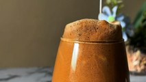 ''Coffee, honey, and water are whisked into a frothy dalgona cream, then poured on top. The layers begin to blend slowly.''