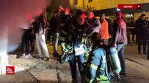 Mersin'de 13. katta iskelede mahsur kalan işçileri itfaiye kurtardı