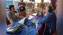 Coop chats with Jen Bascom on the Grand Hall aboard Disney Destiny