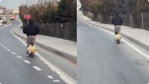 KAĞITHANE'de trafikte iki sürücü arasında yol verme tartışması çıktı. Ani frenler yaparak trafiği tehlikeye düşüren sürücüsü, kırmızı ışıkta aracından inerek Muhammed Yağız Ö.'nün (26) kapısını açmaya çalıştığı sırada otomobil ilerleyince yere düştü. Yaşananlar cep telefonu kamerasıyla kaydedilirken sürücüler polise giderek birbirinden şikayetçi oldu.
