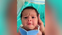 Gözlerini açtığı gibi kaşlarını çattı! Minik bebeğin o anları viral oldu