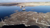 Baraj suyu çekildi, dipte kalan köylerin yapıları ortaya çıktı