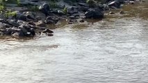Following 10 minutes of making its prey more palatable, it disappeared down the heron’s throat, who quickly had to fly away from the alligator mother’s lunge.