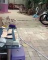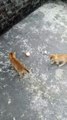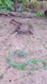 The cat's fearless attitude facing the Oriental Whip Snake.